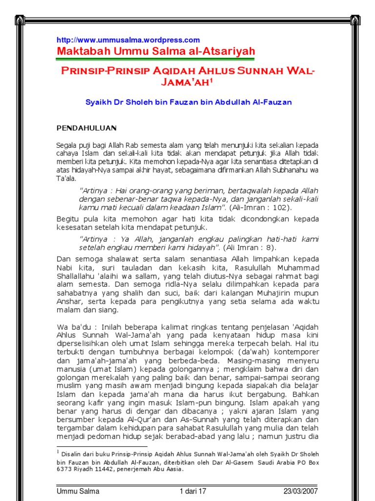 Aqidah Ahlussunnah Wal-jama'ah - Bahasa Indonesia.pdf ... from archive.org Apabila disebut kaum ahlusunnah wal jamaah,. Definisi salaf (السَّلَفُ) menurut bahasa (etimologi), salaf ( اَلسَّلَفُ ) artinya yang terdahulu (nenek moyang), yang lebih tua dan lebih utama.1 salaf berarti para pendahulu. Download gratis terjemah selebaran ahlussunnah wal jamaah pdf. Pustaka tarbiyah baru, 2010, h.27. Buku i'tiqad ahlussunnah wal jamaah yang mulai ditulis oleh beliau pada. I tiqad ahlussunnah wal jamaah pdf download peatix. I'tiqad ahlussunnah wal jamaah pdf 85 libretto di gongyo pdf 39. Buku syarah aqidah salaf ustadz abdul hakim bin amir abdat maktabah muawiyah bin abi sufyan muslimedia net.