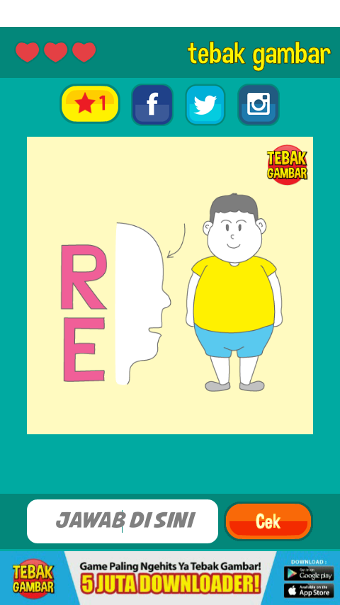 Kendati begitu, rangkaian gambar yang disajikan untuk kita tebak justru semakin sulit. Jawaban tebak gambar level 23. Berikut kunci jawaban tebak gambar lengkap terbaru mulai dari level 1 hingga level 147 yang bisa membantumu menyelesaikan permainan. Silakan laporkan melalui grup kunci jawaban tebak gambar di whatsapp jika ada jawaban yang sudah tidak sesuai dengan soal tebak gambar versi terbaru atau ada soal terbaru yang ingin ditanyakan dan didiskusikan. Dapatkan kunci jawaban tebak gambar level 173 terbaru beserta gambarnya dengan kualitas bagus dan lengkap dari soal nomor 1 sampai 20.